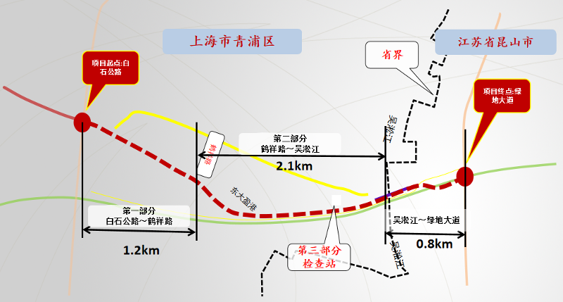 近年来,昆山深入对接长三角区域合作办公室,与上海青浦、嘉定签订交通项目对接合作备忘录,建立长三角一体化青浦—嘉定—昆山交通项目推进联席会议制度,2021年与上海对接道路实现“三个一”,即打通一条“断头路”,2月,曙光路对接复兴路正式通车。开工一条“断头路”,下半年,开工建设沿沪大道对接胜利路工程。建设一条“提档路”,昆山境内北起绿地大道,南至省界,总长约2公里,双向四车道布置,二级公路标准设计,新建跨吴淞江大桥一座,一期实施吴淞江大桥段,长约0.5公里。目前,正在进行绿化、管线迁移工作。